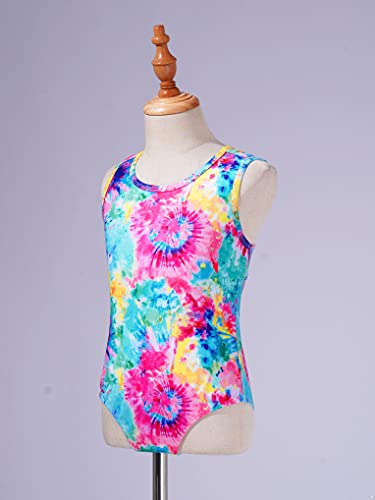 • Kids Girls Straps Cross at Rear Keyhole Back Various Print Leotard Bodysuit