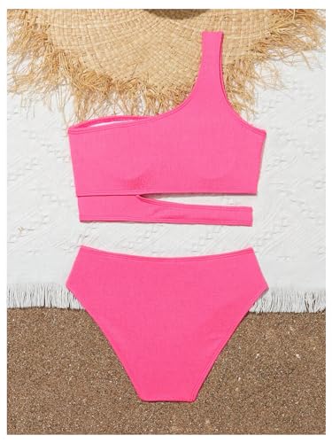 sizzling ! SHENHE Girl's 2 Piece One Shoulder High Waisted Cut Out Bikini Swimsuit Bathing Suit