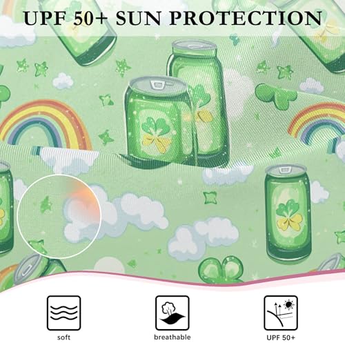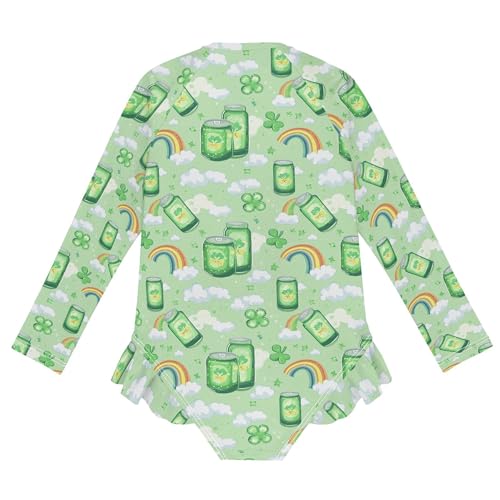 St Patrick Clover Cans Rainbow Girls Long Sleeve Rashguard Swimsuit UV Protection One-Piece Swimwear B0404678