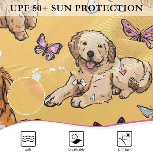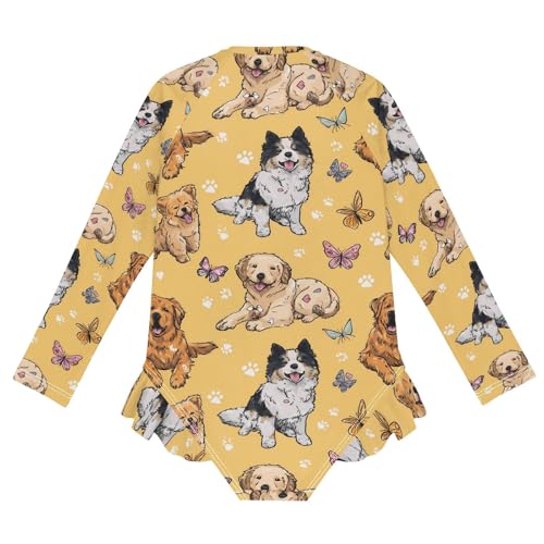 Dog Butterfly Pattern Girls Long Sleeve Swimsuit Rash Guard One Piece Bathing Suits Zipper 3-12T