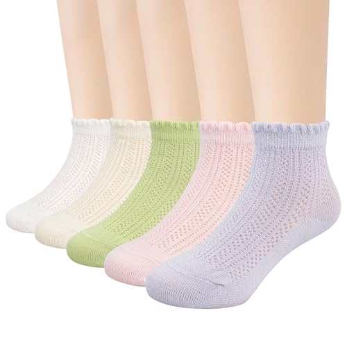 • MESH DESIGN: Toddler girls mesh socks are highly light and breathable, keeping your feet cool and dry entire day long, showing parents' careful care for their babies.