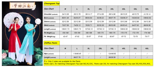• 🍋 Package Included: 1 x Half Sleeved Cheongsam Dress; 1 x White Chiffon Pants; 1 x Inner Camisole(The color of Camisole is different for different dress.White for Yellow&Green Dress,Black for Blue Dress,Red for Red Dress)