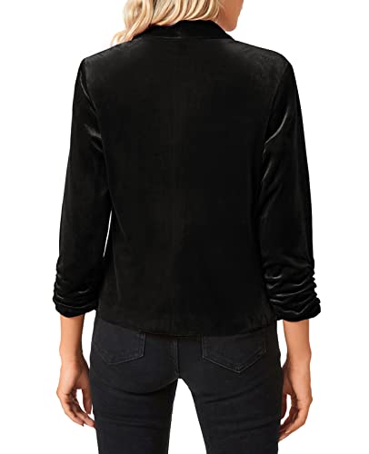 Why Choose MINTLIMIT Women's Velvet Blazer 3/4 Ruched Sleeve Open Front Blazers Casual Lightweight Shawl Lapel Jackets?