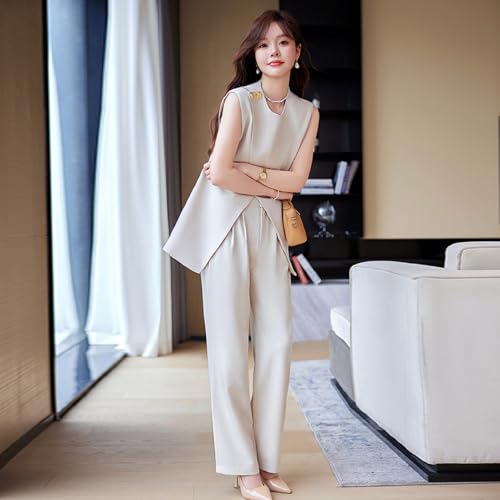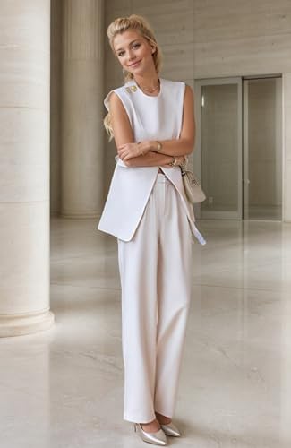 Womens Sleeveless Suit Vest and Wide Leg Pants Business Summer Casual Top Blazer Jacket Suit Sets for Women 2 Piece Outfits