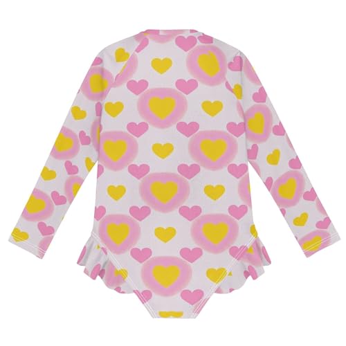 Girls Long Sleeve 1 Piecing Colorful Yellow Heart Peach Swim Suits for Girls Kids Bathing Suit
