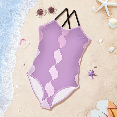 Bolaz Girls Swimsuits One-Piece Bathing Suits Multicolor Kids Sport Summer Beach Swimwear for 3-10 Years Old-Purple and Light Purple Wavy Columns Pattern