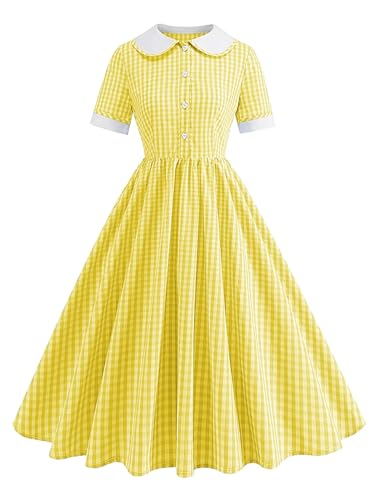 Peter Pan Collar Vintage Cotton Summer Dresses Women Short Sleeve Pleated Rockabilly Dress