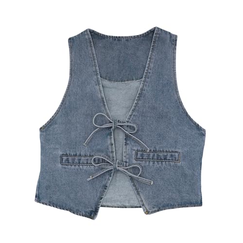 BOLLEY JOSS Women Tie Front Tops Y2k Vintage Denim Vest Vintage V Neck Solid Washed Jean Tank Crop Tops