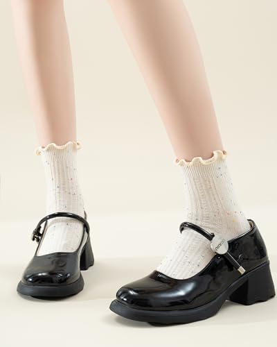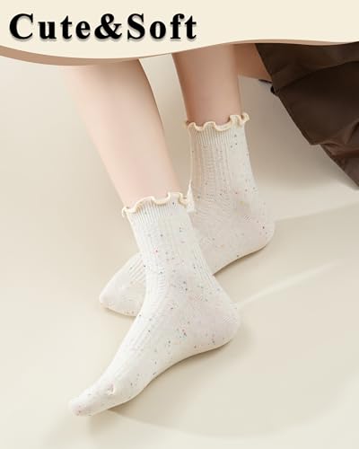 • 【current Ruffle Cuffs】 Features adorable ruffle cuff detailing with a secure rubber band to prevent slipping while adding a cute, feminine touch.Subtle flecks of textured yarn add a touch of whimsy to classic designs.