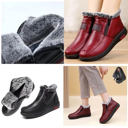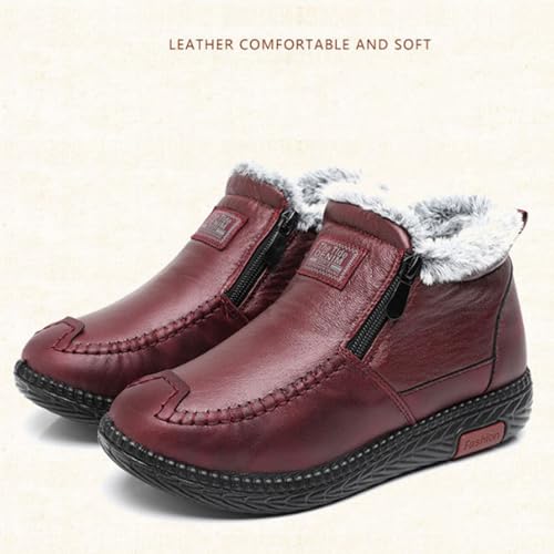 Women's Winter Waterproof Non-Slip Thick Plush Fur Lined Ankle Snow Boots,Mama Cotton Leather Shoes with Zipper