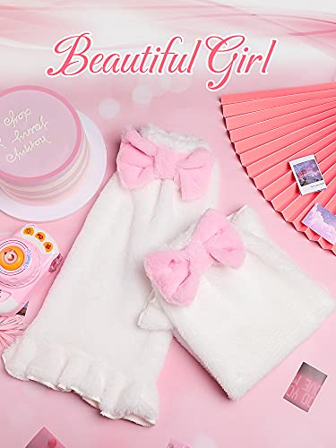 Kawaii Pink Bow Leg Warmer Y2k Furry Bow Leg Warmers Lolita over The Knee Socks for Women Girls (White and Pink)