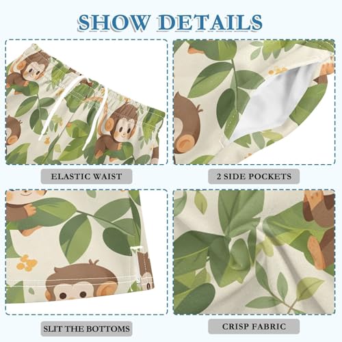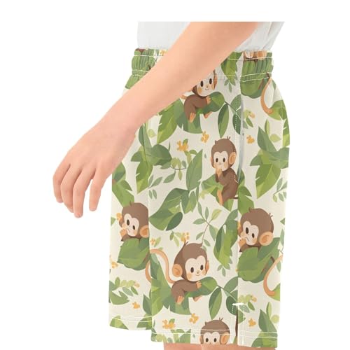 Boys Athletic Shorts with Pockets Cute Monkey Running Basketball Shorts for Youth Elastic Waist Size 7-8