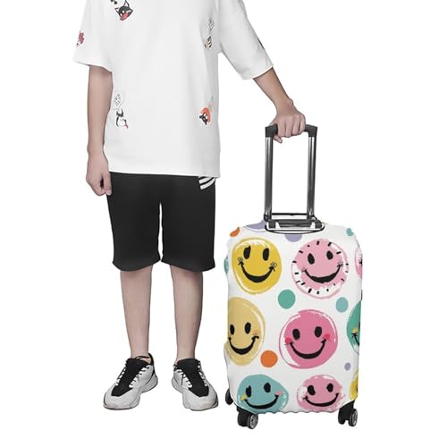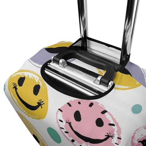 Luggage protective cover: Upgrade your travel gear with our travel luggage cover, made from stretch polyester. This easy-to-clean cover protects your suitcase from dirt, scratches, and wear while adding a sophisticated touch with its vibrant double-sided print.Pastel Color Smiley Face Fashion luggage covers: Available in a variety of fashionable colors and patterns, whether you're traveling for business or leisure, you can choose one that reflects your personality and adds a touch of flair to your suitcase.Easy to use: Our suitcase cover protector features dual top openings for telescopic and carrying handles, with side zippers for easy access to side handles. It's designed for quick installation and removal, ensuring a hassle-free travel experience.Easy to identify: Travel with confidence and style. The eye-catching design helps you easily spot your suitcase at baggage claim, while the secure fit with double stitching ensures durability. Travel suitcase cover for vacations, business trips, or daily use, it also makes a great choice for frequent travelers.Available in four sizes: S: Fits 19-21 inch luggage; m: Fits 22-24 inch luggage; l: Fits 26-28 inch luggage; xl: Fits 30-32 inch luggage. Sizing tip: Measure your suitcase height without the wheels. Open your luggage cover protector and measure from the inside for the most accurate fit. Perfect for everyday use. superior materials and excellent craftsmanship ensure long-lasting durability.