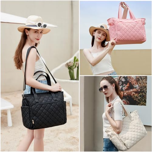 JIANYA Tote Bag for Women, Lightweight Work Tote Bags with Laptop Compartment, Quilted Shoulder Bag for Travel