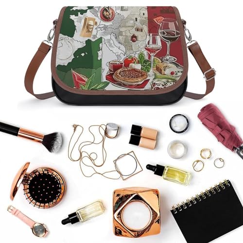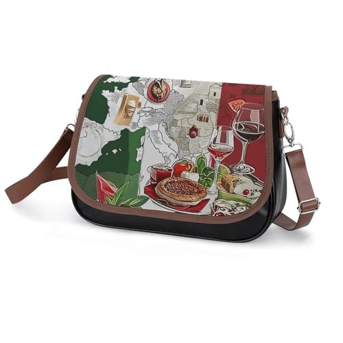 Italian Flag Pizza Crossbody Shoulder Messenger Women Bag Pu Leather Office Work Business for Handbag Crossbody Bag