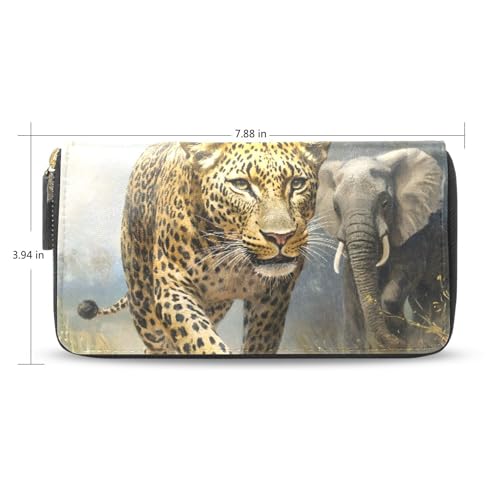 MNSRUU Womens Wallet Purses, Leopard Elephant Walk Clutch Purses for Women RFID Blocking Credit Card Holder Wallet Leather Zipper Coin Purse