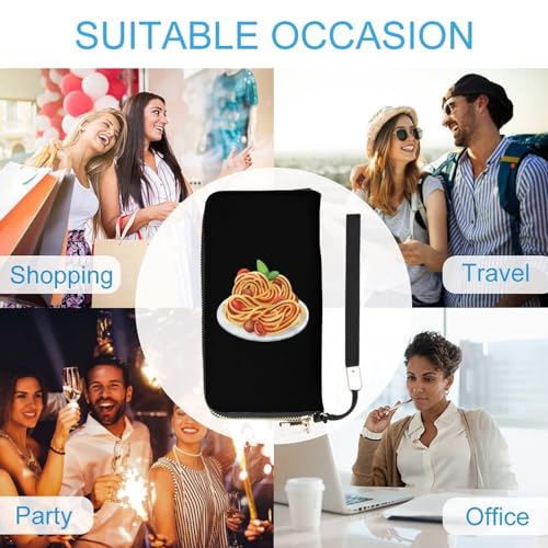 Italy Pasta Noodle Long Wallet for Women Men Coin Pouch Credit Card Holder Zipper Purses with Wristlet