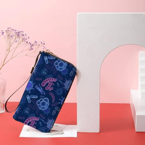 Microbes Long Wallet for Women Men Coin Pouch Credit Card Holder Zipper Purses with Wristlet