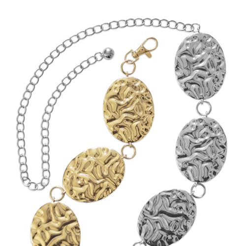 Fabric type: MetalCare instructions: Wipe Clean With supple Dry Cloth, Avoid Exposure To Water And Harsh ChemicalsOrigin: ImportedWestern-Inspired Gold Concho Chain Belt: Make a bold style statement with this western concho belt featuring oversized hammered gold-tone conchos connected by chain links—perfect for cowgirl and country concert outfits.Versatile Cowgirl Waist or Hip Belt: Style it high on your waist or low on your hips. Whether over dresses, jeans, or skirts, this boho concho belt for women adds a trendy western edge to any outfit.Adjustable Fit for All Sizes: With its extended chain-link design, this concho belt for women allows for custom sizing. Small has 7 conchos, Medium has 9 conchos, Large has 11 conchos.Premium Hammered Metal Design: Crafted with durable metal and a textured hammered finish, each concho gleams with eye-catching vintage charm. Ideal for fans of western metal belts for woman or belt chains for women.The Perfect Festival & Rodeo Accessory: A must-have for country belts for women and cowgirl chain belt lovers. This piece fits right in at Stagecoach, Coachella, or your next girls’ trip to Nashville. Perfect for everyday use. finest materials and excellent craftsmanship ensure long-lasting durability.