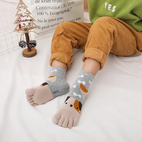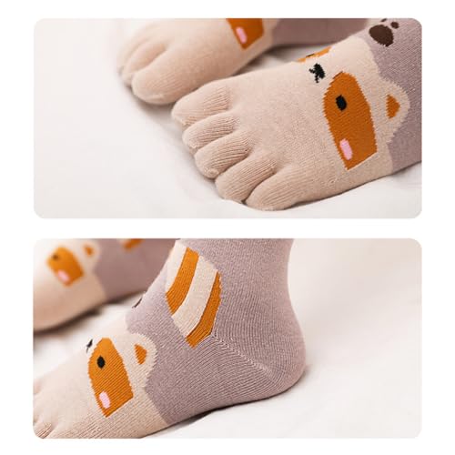 5 Pairs Children's Five Finger Cotton Toe Socks - Cartoon Animal Design for Boys and Girls - Breathable 3-12 Years Old
