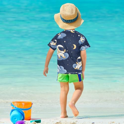 Boys Swing Shirts Astronaut Star Cartoon Lunar Rashguard Short Sleeve Kids T-Shirts Sun UPF 50+