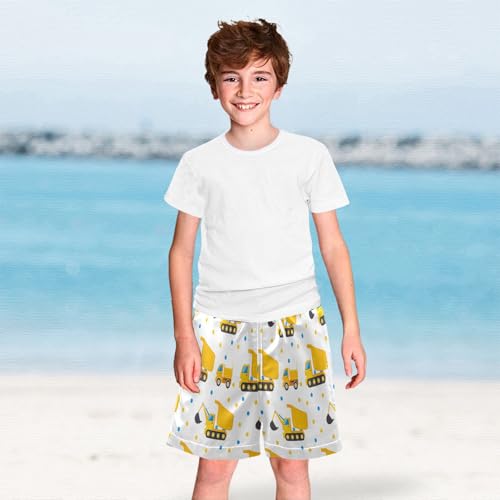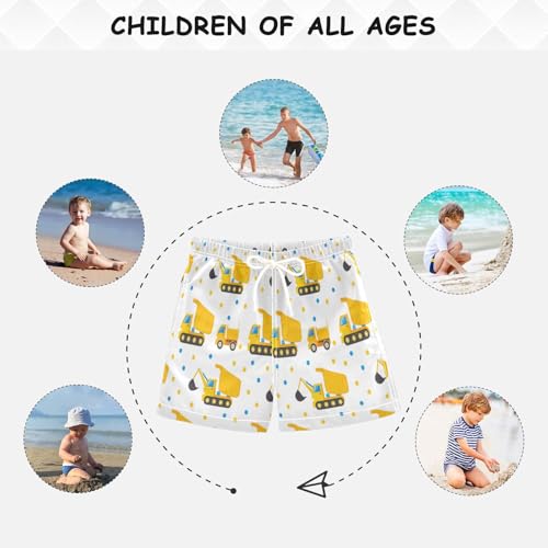 Swim Boy Shorts, Toddler Boys Swimwear 2t, Cute Yellow Construction Trucks