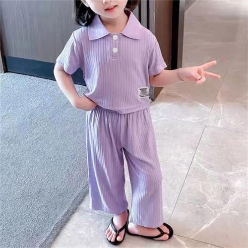 sizzling ! Kids Girls Knit 2 Piece Set Short Sleeve Button Down Shirt + Drawstring Pants Toddler Cotton 𝐋oungewear Ribbed Knit Set