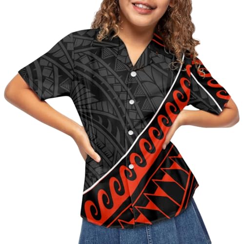 More information about GLUDEAR Boys Girls Hawaiian Shirts Polynesian Printed Funky Short Sleeve Button Down Aloha Luau Shirt