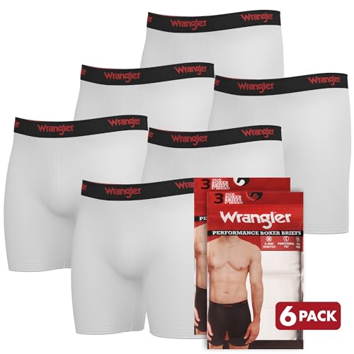 • ULTIMATE COTTON COMFORT - Men’s underwear boxer brief in white. Wrangler's Cotton Boxer Briefs underwear for men, pack of 6. Made from 95% cotton and 5% elastane, these mens briefs provide breathable softness with the flawless amount of stretch, great for all-day wearing.