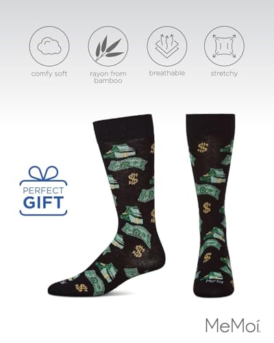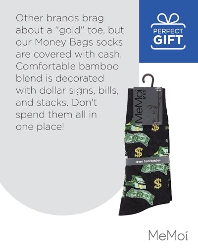 Why Choose MeMoi Money Bags Cash Print Men's Socks, Rayon Blend Mens Crew Socks, Environmentally Friendly Fabric - Sizes 10-13, Black, 10-13?