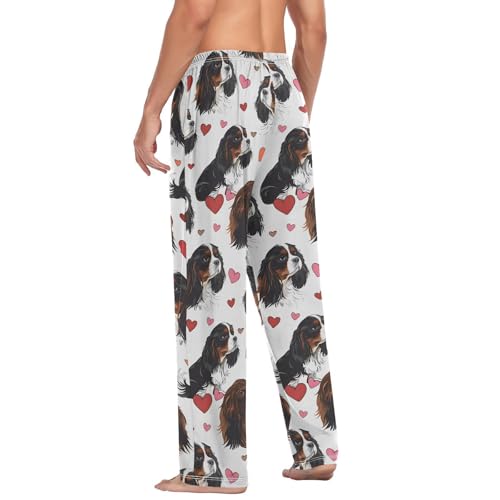 sizzling ! Cute Cavalier King Charles Dog Heart Pajama Pants Mens Lounge Pjs