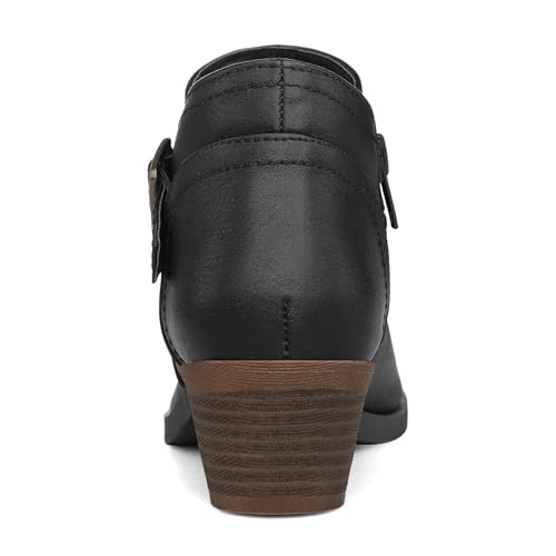 Sole material: RubberOuter material: Polyurethane (PU)Closure type: ZipWater resistance level: Not Water Resistant【Elevate Your Style】With a heel height of 1.77 inches, these ankle boots are perfect for fashion lovers who want to elevate their style. Featuring stacked low heel and an ankle metal buckle, these booties will make you stand out in any crowd.【Chic Design】 The classic round toe design with a zipper closure is on-trend and easy to wear, while the side buckle adds a touch of retro elegance. Whether you're dressing up or down, these boots will complement any outfit and make you look and feel fabulous.【Stable and Safe】The anti-slip and wear-resistant TPR outsole offers excellent grip, ensuring you stay safe and stable on any surface. The easy-to-clean PU material also makes maintenance a breeze, so you can keep your boots looking as good as new.【All-Day Comfort】The soft and comfortable interior of these ankle booties makes them perfect for all-day wear. Whether running errands or commuting to work, your feet will thank you for choosing these shoes.【Versatile Style】Suitable for all seasons and occasions, these short boots are a versatile addition to your shoe collection. Pair them with jeans, shorts, or dress pants to create a variety of modern outfits that showcase your unique sense of fashion. Whether you're going on vacation, walking outdoors, or attending a business meeting, these boots have covered you. Perfect for everyday use. finest materials and excellent craftsmanship ensure long-lasting durability.