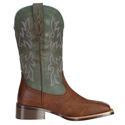 Sole material: RubberShaft height: Calf HighShaft circumference: 10.43 InchesOuter material: Faux LeatherThis J's.o.l.e cowboy boot is a head turner and stylish and comfort.Truly everything a cowgirl could want for that special boot in her collection.SIZE TIPS: WIDE COWBOY BOOTS FOR WOMEN, NARROW AND STANDARD FEET WE SUGGEST ORDER ONE SIZE DOWN.WIDE SQUARE TOE PROFILE:Double-stitched welt and wide width toe design to keep feet comfortable.FASHION COWBOY DESIGN :Women's Square Toe Cowgirl Boot is dual color with a charming turquoise shaft and distressed design.Our modern embroidered boots can match with any clothes you like in any season.FEATURES:Western tradition meets next-generation technology/Intricate six-row stitch pattern/Lightweight and flexible sole for durabilityVARIOUS OCCASION:This mid calf cowboy boots can be easily matched with various styles and suitable most of the daily life occasions, Such as western party,grassland, wedding, outdoor concert, farm ranch work,rodeo,horse riding and so on. Perfect for everyday use. superior materials and excellent craftsmanship ensure long-lasting durability.