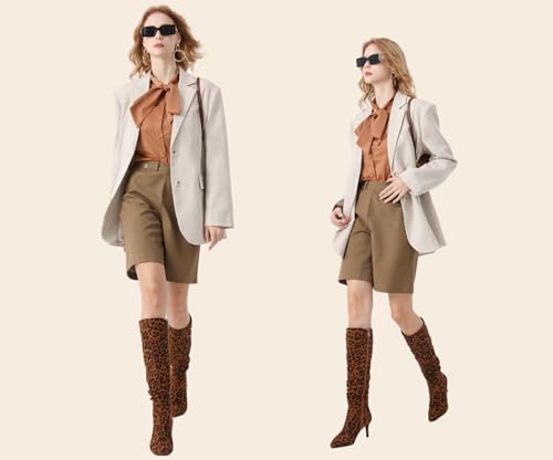 Sole material: RubberShaft height: Above the KneeShaft circumference: 15.5 InchesOuter material: LEOPARD SUEDE LEATHERSuperior Craft Designs: This leopard print boots for woman is made with middle-high Stiletto heel and non-slip rubber sole and classic pointed toe shape, which makes it easy for walking and also more safety and comforts.High Qualify Materials: This womenβs thigh high boots are produced with soft leopard printed faux leather vamps, plus breathable jersey fabric Lining, plus 4.0mm thickness sock latex, which can makes sure this slouchy boots are not only with comforts, durability and long-lasting wear, but also brings happy feeling for your feet and body.Various Suitable Occasions: This daily dress black knee high boots for women are available in two colors. whether It's Work, Dating, Leisure, Dance, Wedding, Holiday, or Business Activities, wearing this black boots knee high can make you always showing confidence and charm.Right Styling Options: Dress up with this black knee high boots in varieties of outfits, such as Skinny Jeans, Dress and Mid-high Dresses, Tapered Pants, Wide Trousers, Blouses, Jumpsuits, or Rompers, to look super lovely and stylish.Fantastic Leopard Boots: With Minimalist and Functional creations, you will have an unexpected comfortable walking experience, beside people can see your feet are dancing with this Leopard boots for woman, meanwhile it will fully and deeply express your feminine elegance and independence. Perfect for everyday use. finest materials and excellent craftsmanship ensure long-lasting durability.