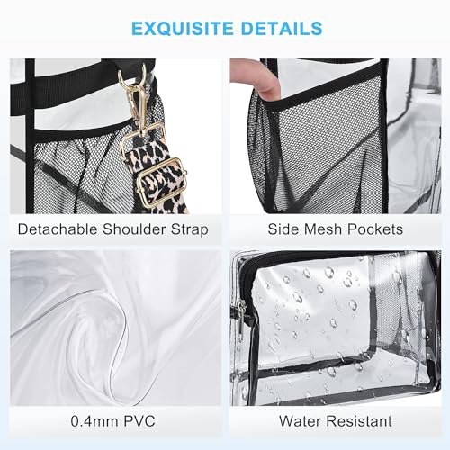 PVCImported【Stadium Approved】With a size of 12x 12x 6, the clear tote bag is faultless for occasions where clear bags are required such as festivals, sports games, concerts etc. Quickly pass the security check.【Fitted Size】The clear bag for stadium events has a main compartment(12x 5.5x12). Big enough for carry-on items like cellphone or camera. The front pocket (7.5x6.5) and 2 mesh pockets are handy to store your essentials or drinks.【Sturdy Material】The clear tote bag with adjustable strap is made of non-odorous transparent thickened PVC material. Reinforced seams make it more sturdy to hold heavy loads, avoding tearing aprt.【Water Resistant】The PVC material makes this clear bag water-resistant. No more worries of a sudden rain or splashing water. Easy to be cleaned for next use.【Clear Stadium Bag】Casual daily wear, it has an adjustable shoulder or cross body strap, sturdy it would stay molded in its rectangular shape making it easy to place in between the seats. Perfect for everyday use. superior materials and excellent craftsmanship ensure long-lasting durability.