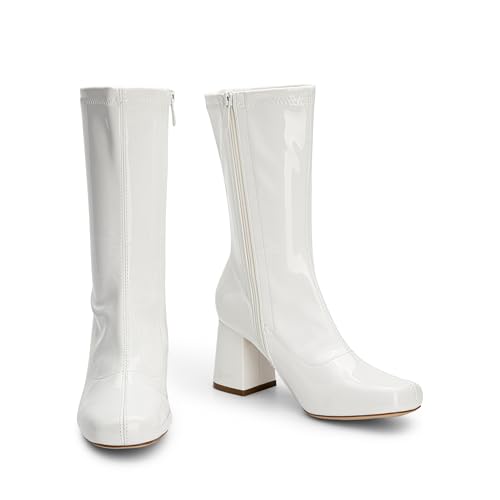 sizzling ! DREAM PAIRS Women's Mid Calf Gogo Boots Low Block Heel Square Toe Ankle Boot with Zipper for Party Cosplay Dance