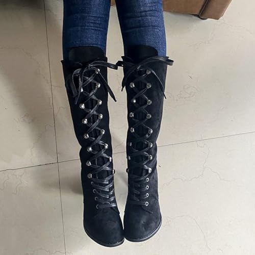 sizzling ! Boots for Women Faux Suede Steampunk Halloween Vintage Chunky Heel Boots Winter Lace Up Mid Calf Goth Booties