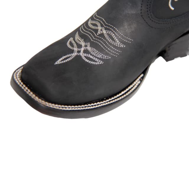 • Women’s Square Toe Genuine Leather Floral Embroidered Vintage Western Cowboy Boot