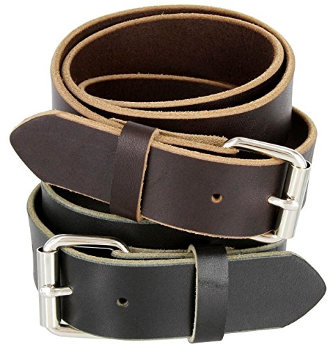 • Mens full grain one piece heavy duty genuine leather work belt with iron roller buckle