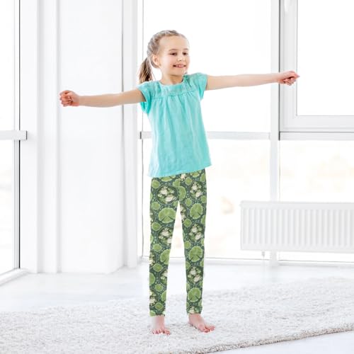 Green Frog Water Lily Leaf Girls Leggings velvety Stretch Workout Yoga Dance Pants for Kids Casual Tights