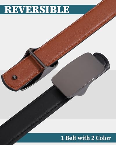 AWAYTR Boys Reversible Belt for Kids - Black and Brown PU Leather Dress Belts for School Uniform Jeans