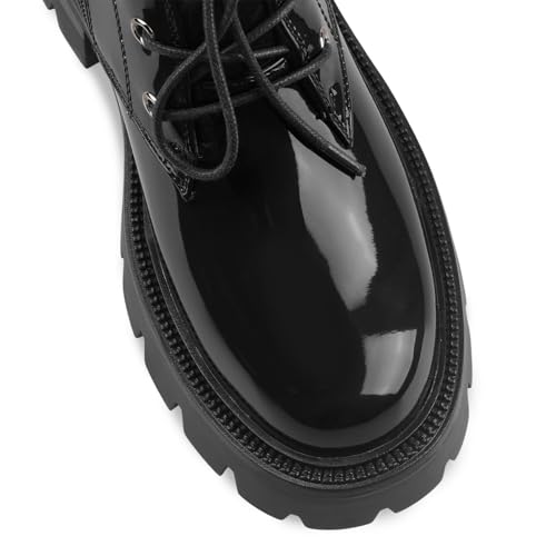 Women's Lug Sole Short Combat Boots Black Chunky Heel Platform Ankle Booties Comfy Flat Boot Lace Up Oxford Shoes with Side Zipper for Ladies Cute