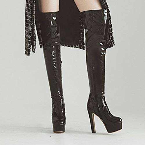 Bellirala Womens Patent Leather Platform Thigh High Chunky High Heel Over The Knee Boots