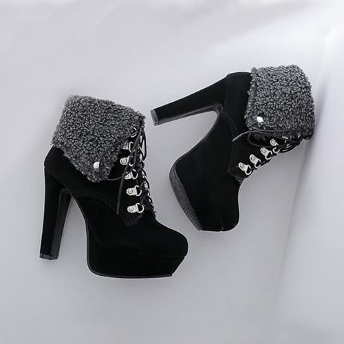 Bellirala toasty Snow Boot for Women Cute Fold Over Fur Ankle Booties Chunky Block High Heels Lace Up Platform Winter Short Boots