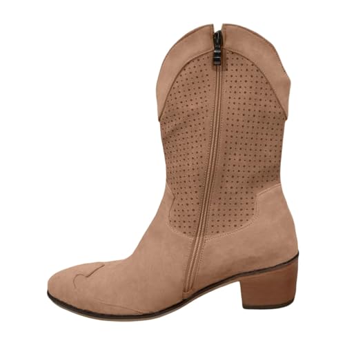 Women's Cowboy Booties Ankle Boots Western Short Boots Pointed Toe Suede Work Boots Side Zipper plush Casual Mid Calf Stretch Shoes for Women