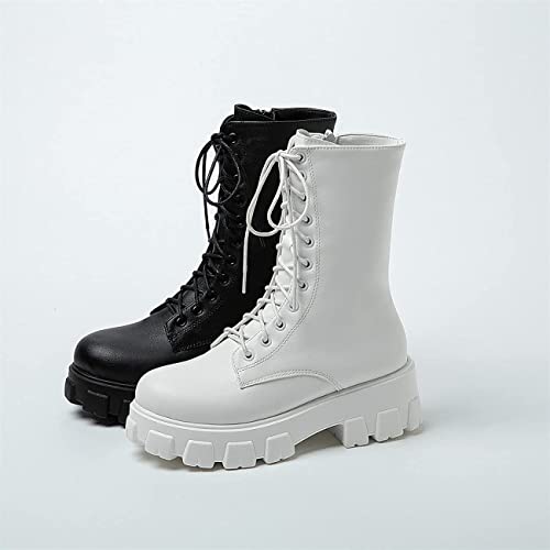 HINDOLA Women's Platform Chelsea Combat Boots Lace up Mid Calf Knight Boots Low Heel Platform Side Zip Ankle Boots