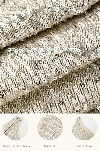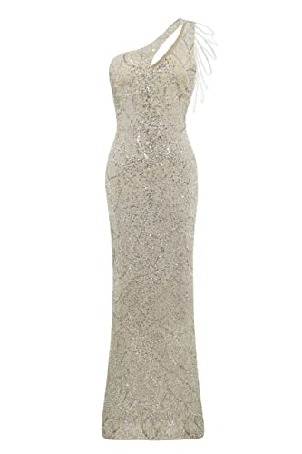 BABEYOND Women's Sequin Prom Dress - One Shoulder Maxi Dress Gowns and Evening Dresses for Party Wedding Guest Silver