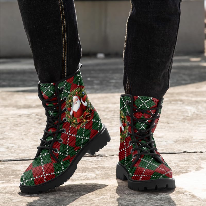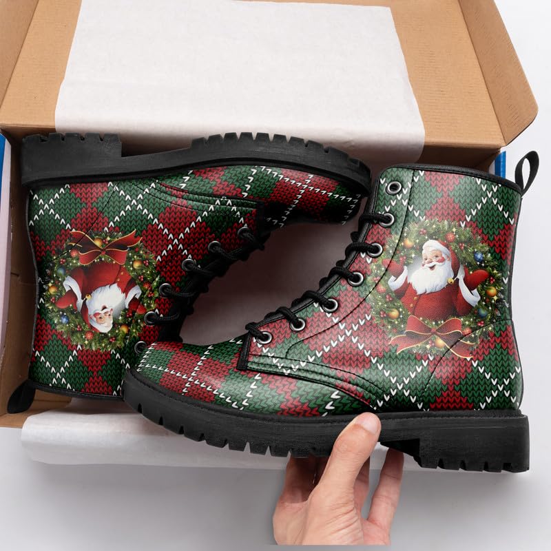 Sole material: Thermoplastic ElastomersOuter material: MicrofiberClosure type: Lace-UpWater resistance level: Water ResistantFestive Holiday Design:Celebrate the winter season with boots featuring vibrant Christmas elements like snowman, Santa Claus, and holiday patterns. Unisex winter boots are perfect for adding a festive touch to your wardrobe, suitable for men, women, and kids alikeHigh-Quality Materials for Maximum Comfort:Crafted with an ultra-fiber upper, velvety fabric lining, and an EVA cushioned insole, fashionable combat boots are designed for all-day comfort. The premium materials ensure a soft, warm, and cozy fit, making them ideal for the colder monthsDurable Non-Slip Rubber Sole:The sturdy rubber outsole provides excellent grip and stability on snowy, icy, or wet surfaces. Whether you're walking through town, heading to a holiday party, or enjoying outdoor activities, anti-slip Christmas snow boots have you coveredVersatile for Any Occasion:Perfect for holiday gatherings, outdoor winter activities, or casual daily wear, Holiday party warm boots seamlessly combine festive charm with everyday functionality. They also make an excellent Christmas gift for family and friends. Perfect for everyday use. top-grade materials and excellent craftsmanship ensure long-lasting durability.