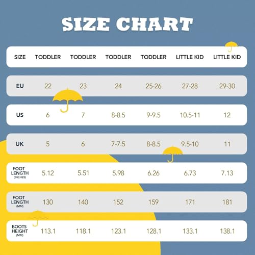 Sole material: Polyvinyl ChlorideOuter material: Polyvinyl Chloride (PVC)Closure type: Pull-OnWater resistance level: WaterproofWATERPROOF: These toddler rain boots are made from lightweight material, making them suitable for everyday use. The seamless one-piece design prevents tears and leaks, keeping children's feet dry and fully protected throughout mud seasonADORABLE: Our rain shoes are designed for both boys and girls, available in bright colors and cute patterns. They are very easy for little kids to put on and take off by themselves. Every child will love wearing these boots to play outside or go to schoolSLIP-RESISTANT: The rugged grooved non-slip outsole provides enhanced traction, ensuring a secure grip even on wet surfaces. This design keeps active children safe while running or stomping on rainy days and supports their growth as independent explorersEASY TO CLEAN: The smooth surface of these kids rain boots makes them very easy to wash. After playing in mud or puddles, just rinse them with water, and they'll look like new againVERSATILE: Our shoes can be used not only as rain boots but also as garden shoes, making them perfect for hiking, camping, and all outdoor occasions. As a bonus, weβre including a free drawstring bag for easy carrying and storage Perfect for everyday use. finest materials and excellent craftsmanship ensure long-lasting durability.