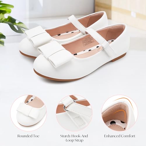 Sole material: Thermoplastic ElastomersOuter material: Polyurethane (PU)Closure type: Hook & LoopWater resistance level: Not Water ResistantAdorable and Elegant Style: Dress your little girl for success in these darling Mary Jane shoes, crafted with soft faux leather in a contemporary matte finish. Featuring a modern bow and timeless strap closure, they’ll be her top pick for special occasionsComfort-First Features: Beauty shouldn’t be a pain, so these shoes have plenty of intentional comfort features. The rounded toe is both chic and practical, offering a non-pinch fit. We also added a spongy heel to prevent blisters and a highly elastic latex insole that cushions every stepChild-Friendly Straps: Our strong hook-and-loop closures offer a secure fit without sacrificing style. They keep a low profile while giving your child more freedom to put on or remove her shoes without helpSafe & Sturdy Outsoles: Whether your child wants to walk, dance, or play, these practical Mary Janes are the perfect choice. Designed with a low-profile heel and lightweight TPR outsole, these dress shoes provide non-slip traction and wear resistance, so she can move confidentlyFor Daily Wear or Special Events: From upgraded school style to weddings, parties, and church, these faux leather shoes will fit right in! The chic yet versatile style will go with all her favorite dressy outfits, so she never has to think twice about finding the right shoes Perfect for everyday use. top-grade materials and excellent craftsmanship ensure long-lasting durability.